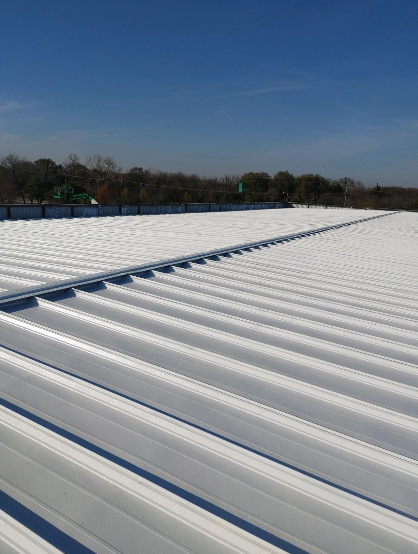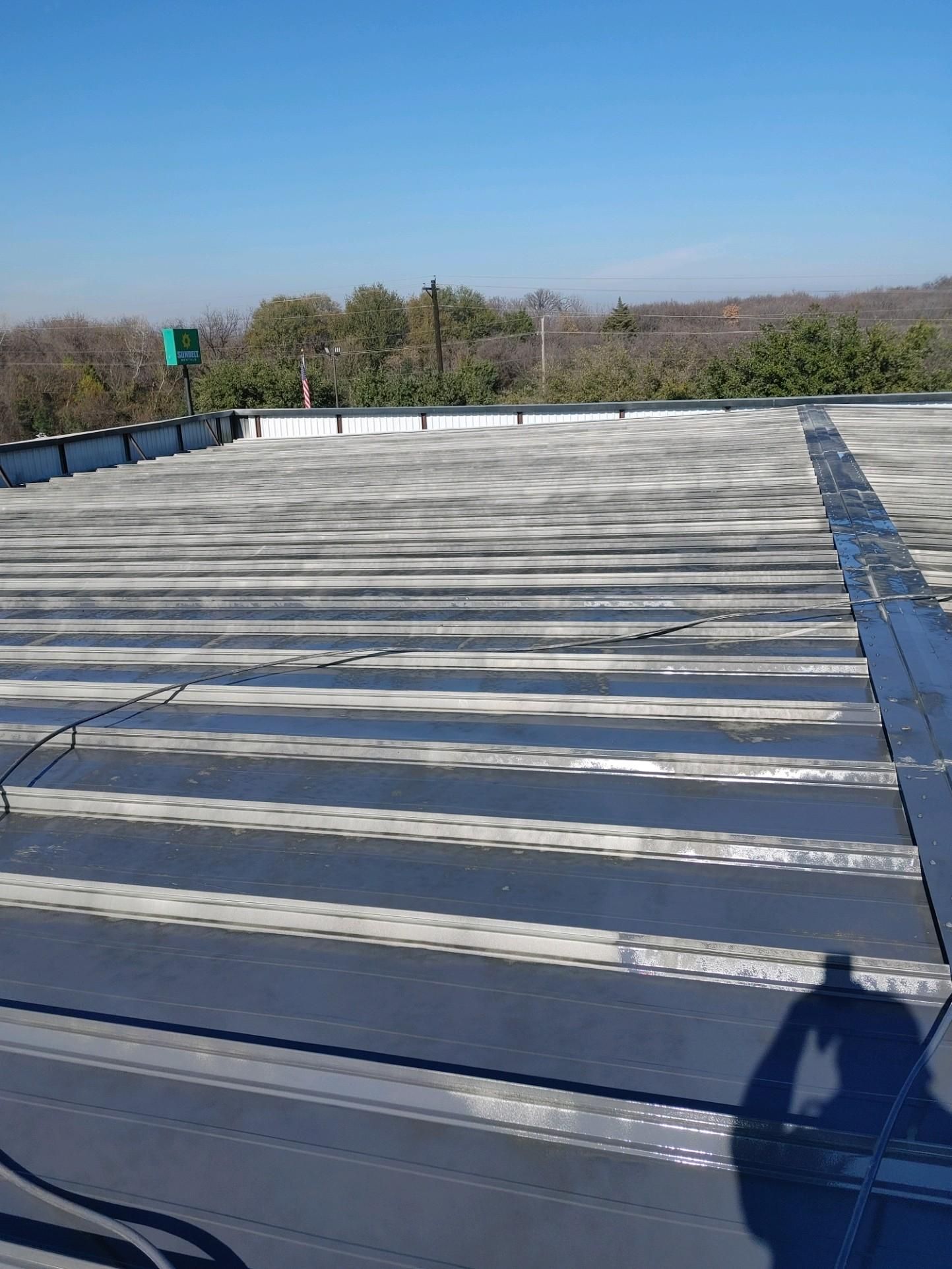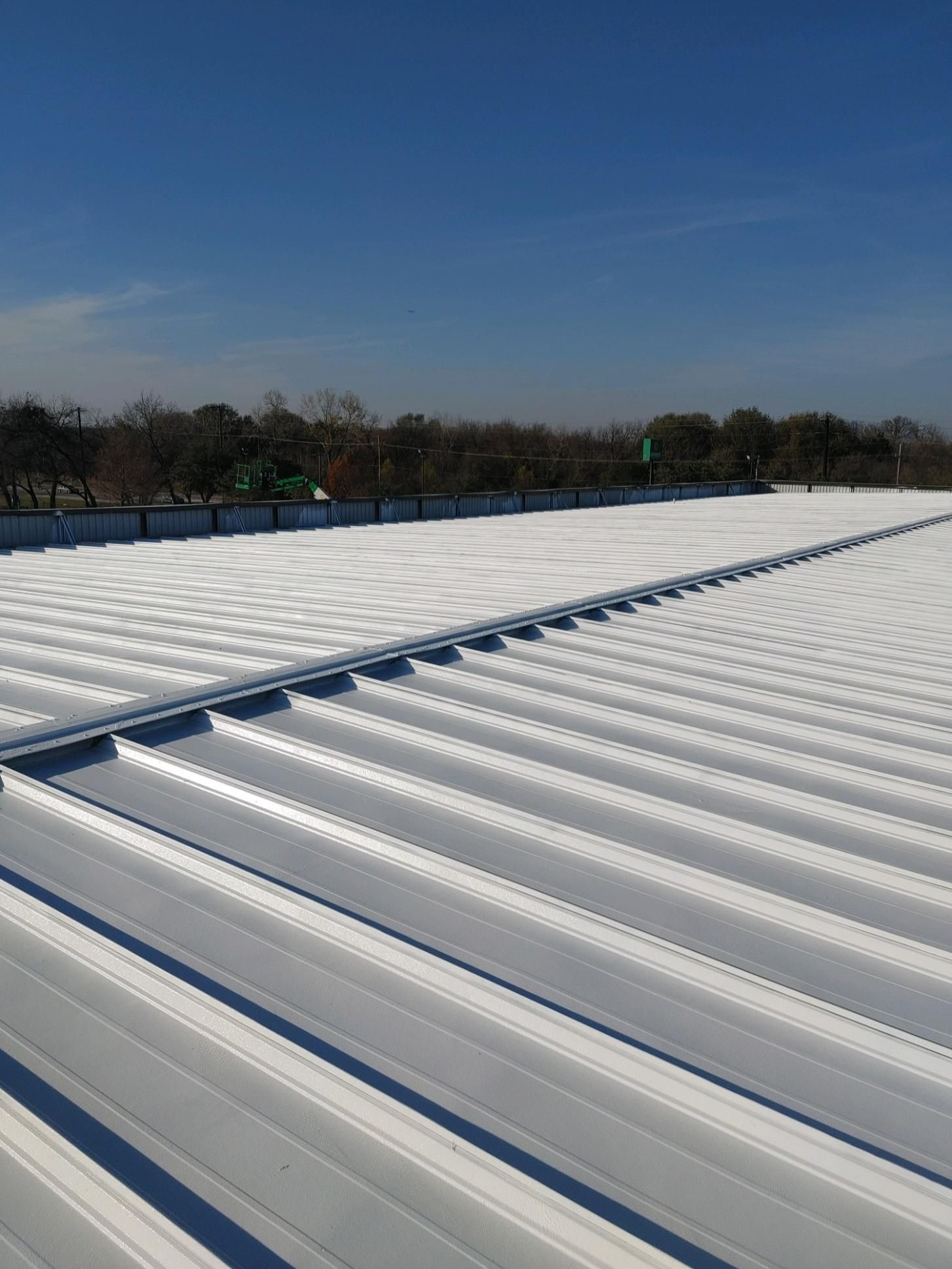 - Install new edge metal on back side of roof and screw plates for wind uplift