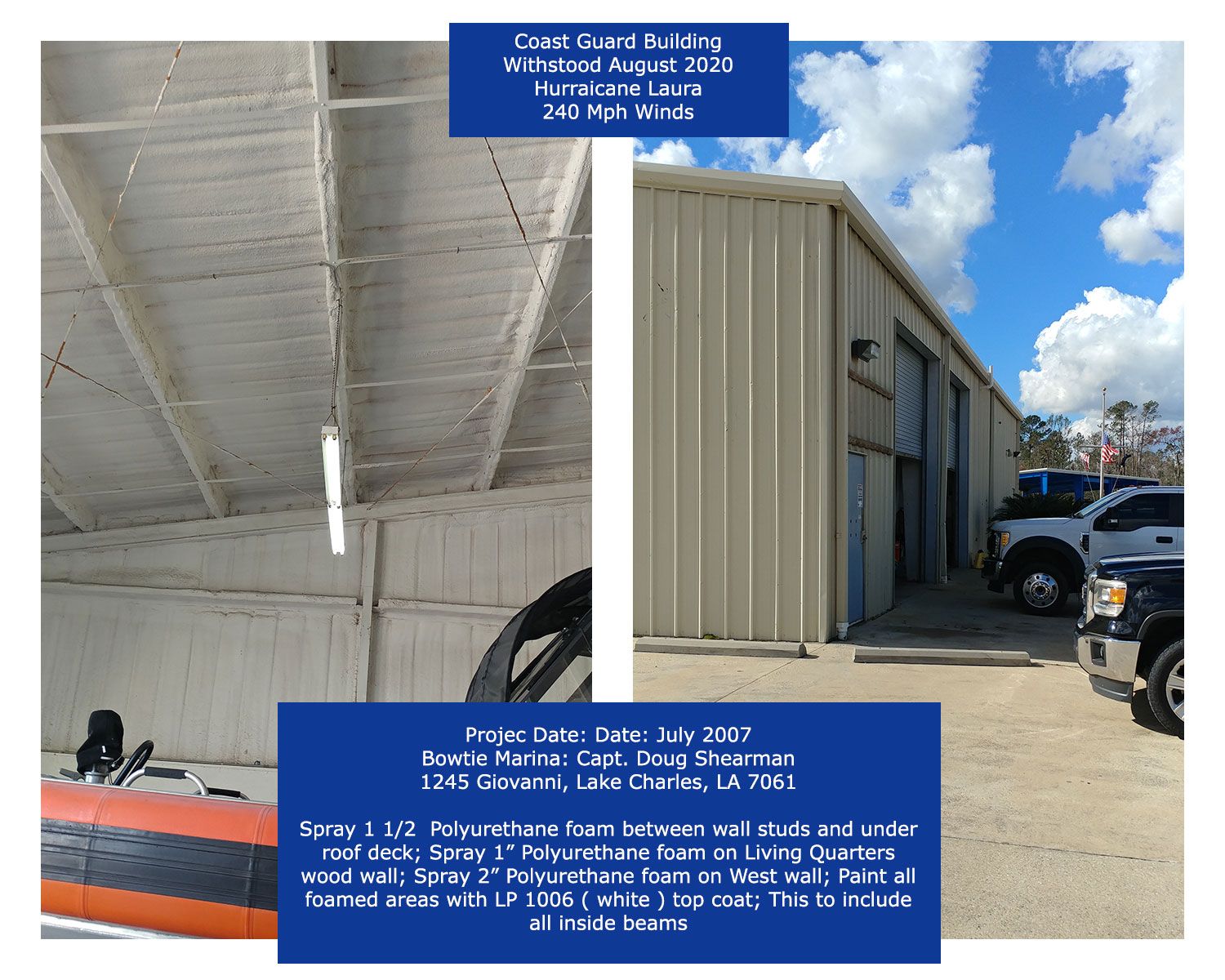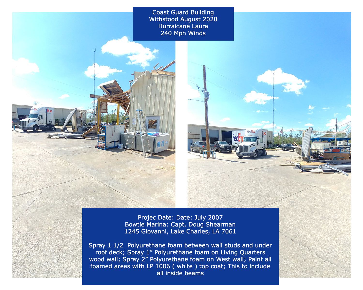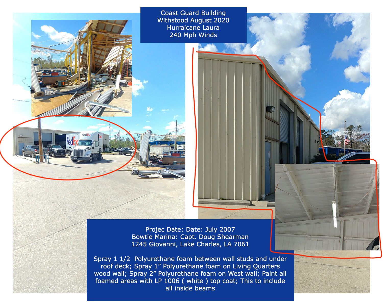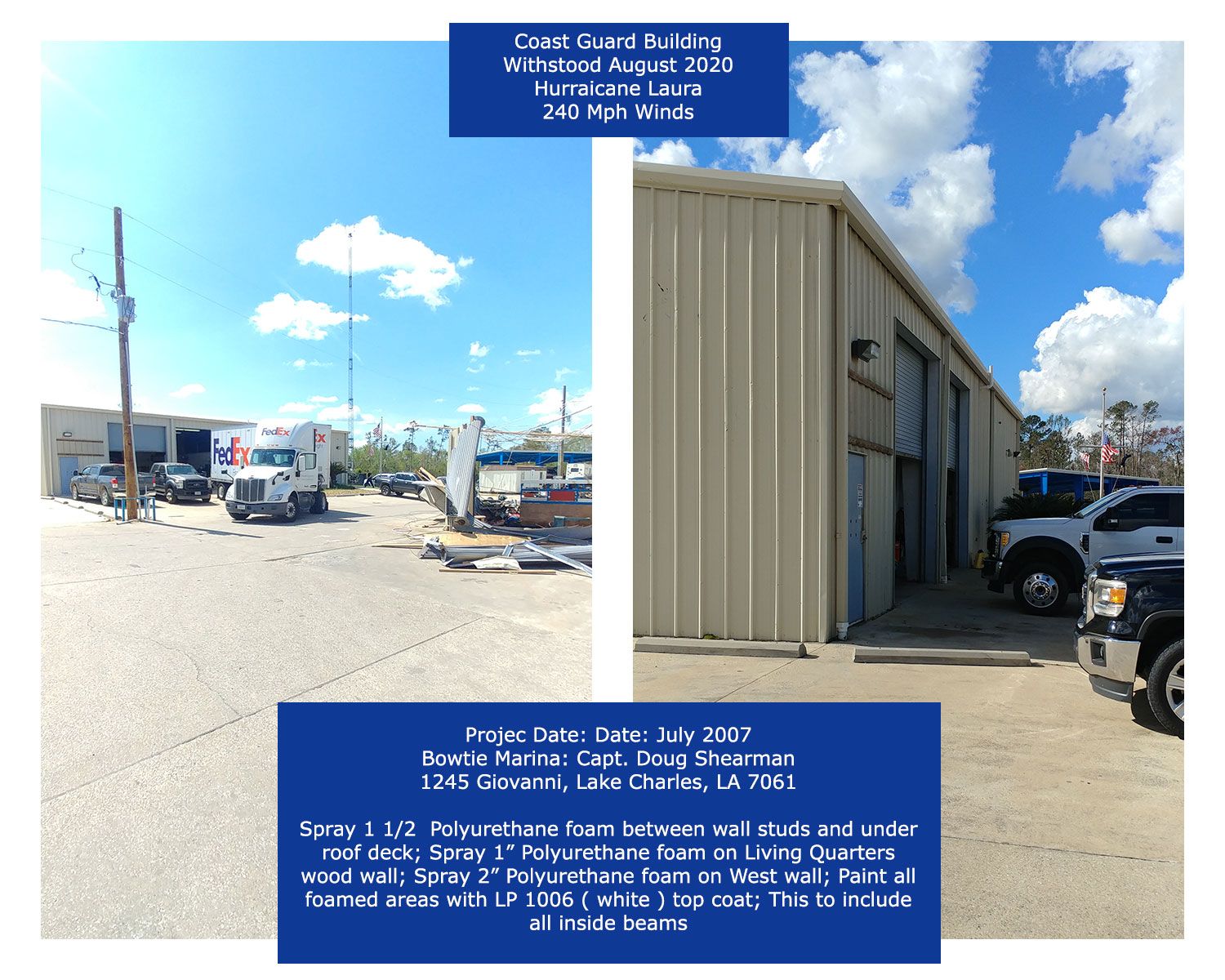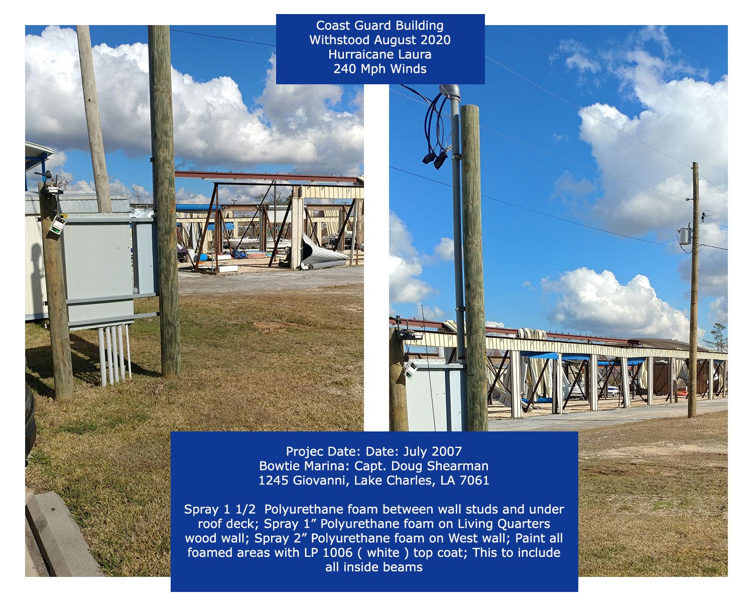 Customer Update: Coast Guard Building at Bowtie Marina, withstood the August 2020, Hurricane Laura's reported winds 240+ MPH.